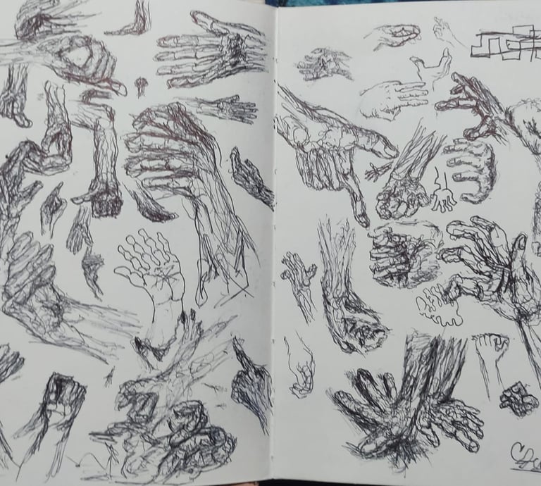 Obras hechas a mano con técnicas de grafito y carbón.